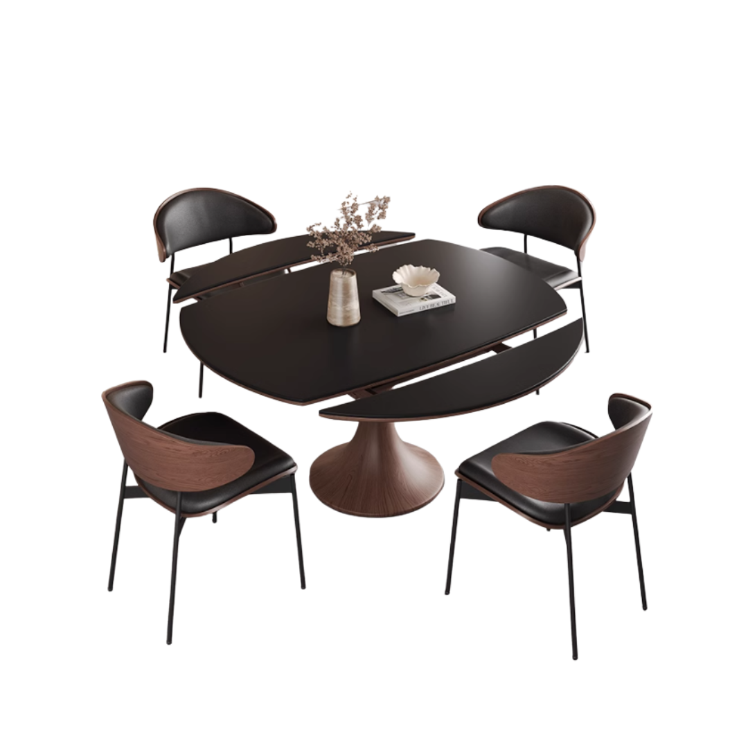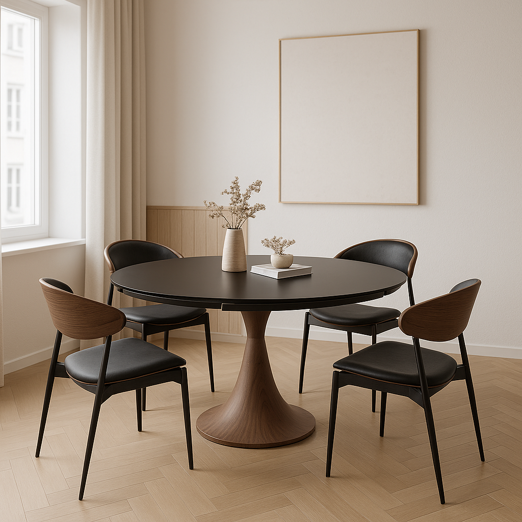 Capri Ebony Ceramic Round Extendable Dining Table Set
