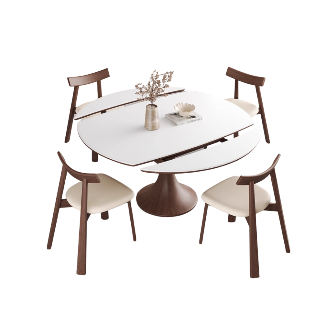 Capri Ivory Ceramic Round Extendable Dining Table Set