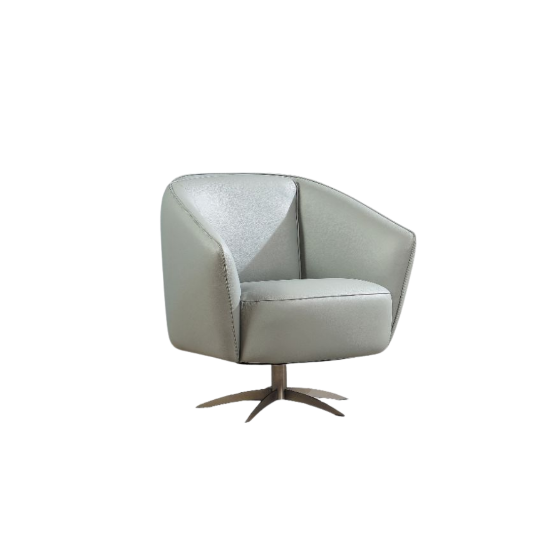 The Dino Armchair features a 360 swivel base with a wide seating, upholstered in genuine leather.