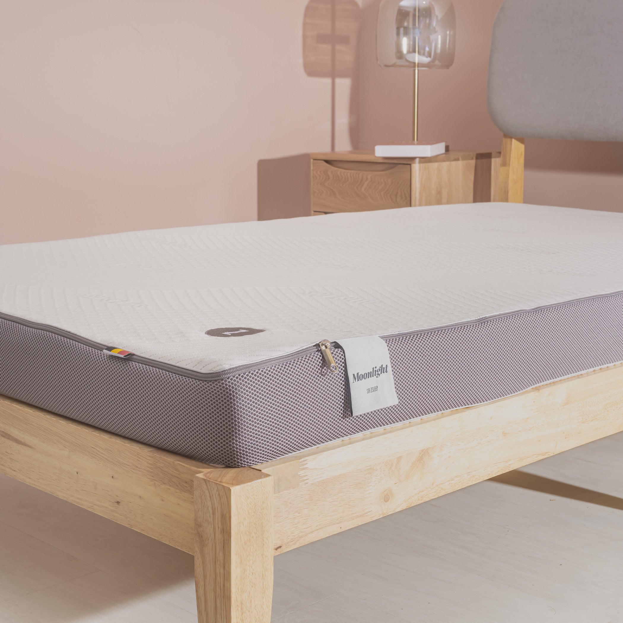 The Moonlight Latex Mattress is a fuss-free, durable mattress designed with young children in mind. Its slim 10 cm (4”) profile makes it a versatile fit for bunk beds, pull-out beds, or even as a floor mattress for preschoolers. Paired with a natural bamboo cover that’s easy to clean, it’s the ideal choice for toddlers and kids, especially during the potty-training stage.