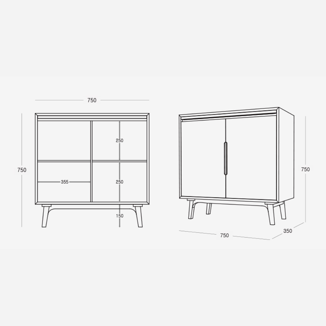Born in Colour wooden sideboard with two doors and mid-century modern design