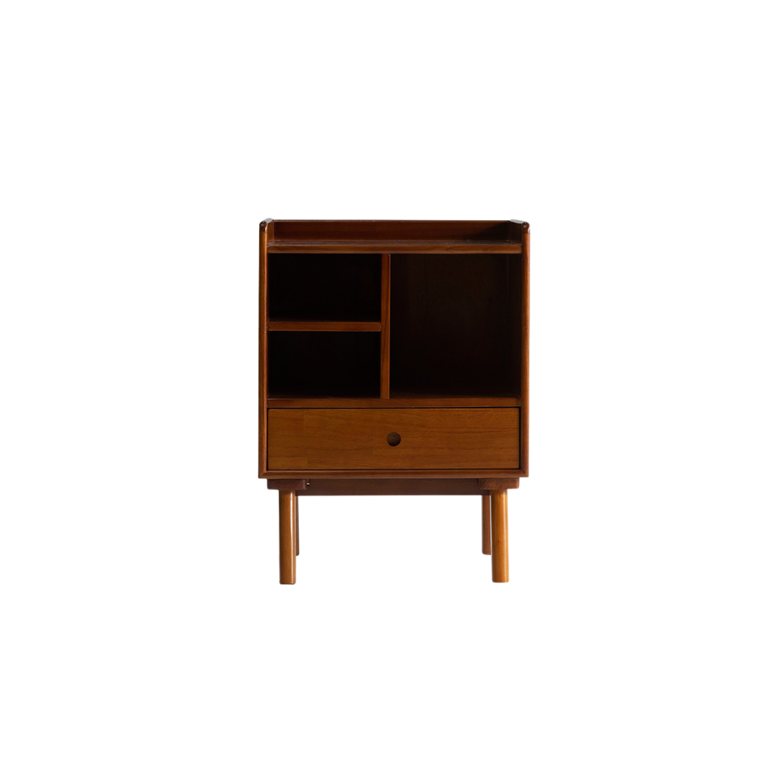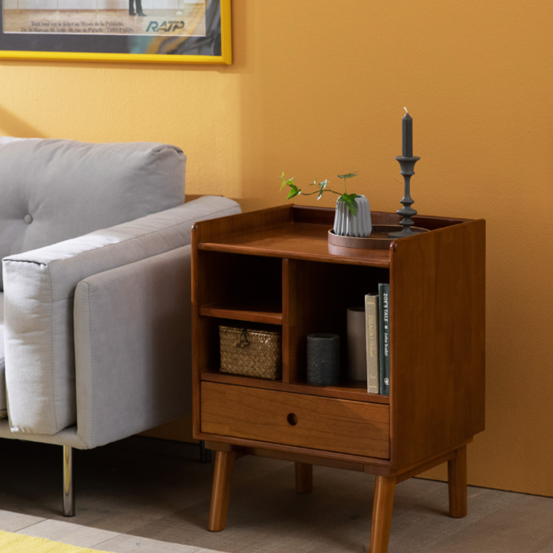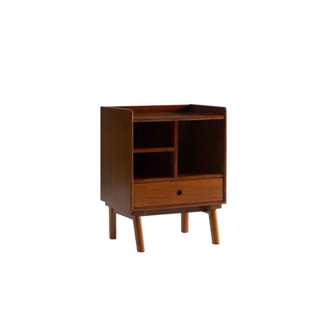 Its minimalist silhouette and rich wood tones create an inviting accent piece that suits both retro and modern interiors—perfect for those who appreciate timeless design and functional beauty.