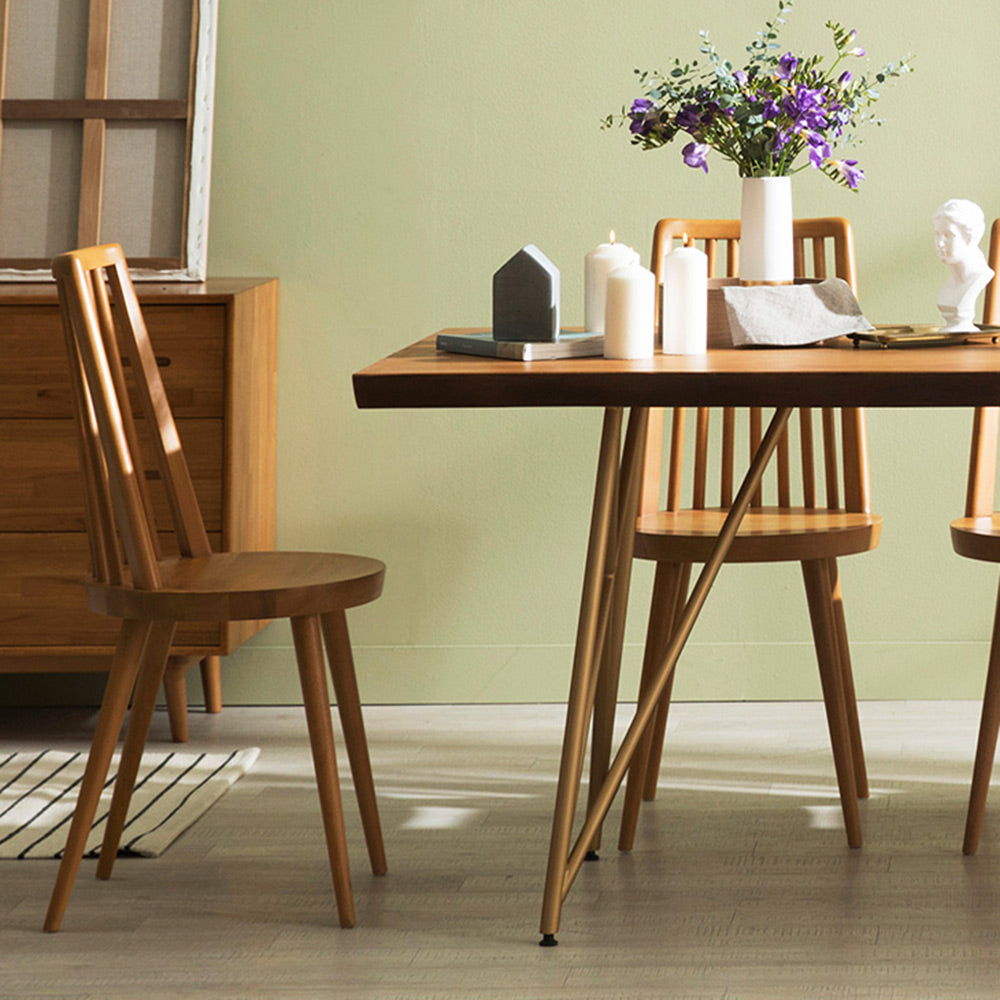 Crafted from rich mahogany wood, the Tavolo Woodslab Dining Table features a striking 1.9-meter slab top paired with sleek X-shaped legs. Its natural grain and sturdy design create a refined centerpiece that blends timeless elegance with modern sophistication, perfect for elevating any dining space.